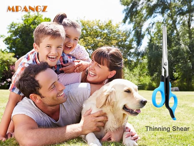 • 【You must need】Be Beautiful Anytime. No need to go to expensive pet shops anymore—now you can use our pet scissors and dog scissors for grooming right at home. With dog grooming thinning shears, you can avoid the hassle of waiting for your pet's hair to become long and messy. Our dog grooming scissors make grooming time flexible, enabling you to easily complete pet grooming at home. You can safely use these stainless steel dog scissors to trim body hair for your dogs, cats, and other pets.