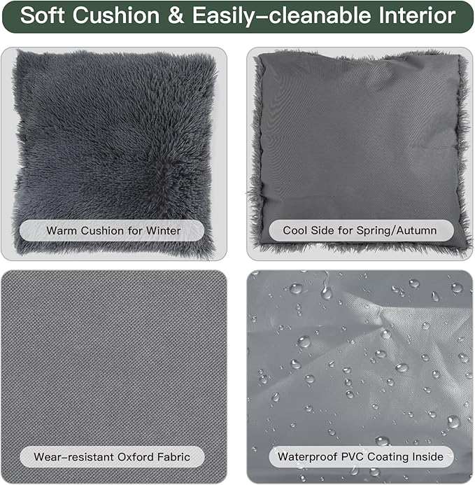 • Easily-cleanable interior: The body of this dog house is made of wear-resistant Oxford cloth, which has windproof and waterproof PVC coating inside and is resistant to dirt and easy to wipe.