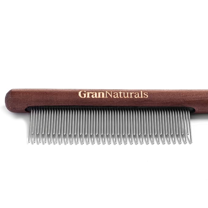 GranNaturals Wooden & Metal Pet Comb for Detangling Hair, Grooming Fur, Dematting for Large and Small Dogs, Short Haired Cats