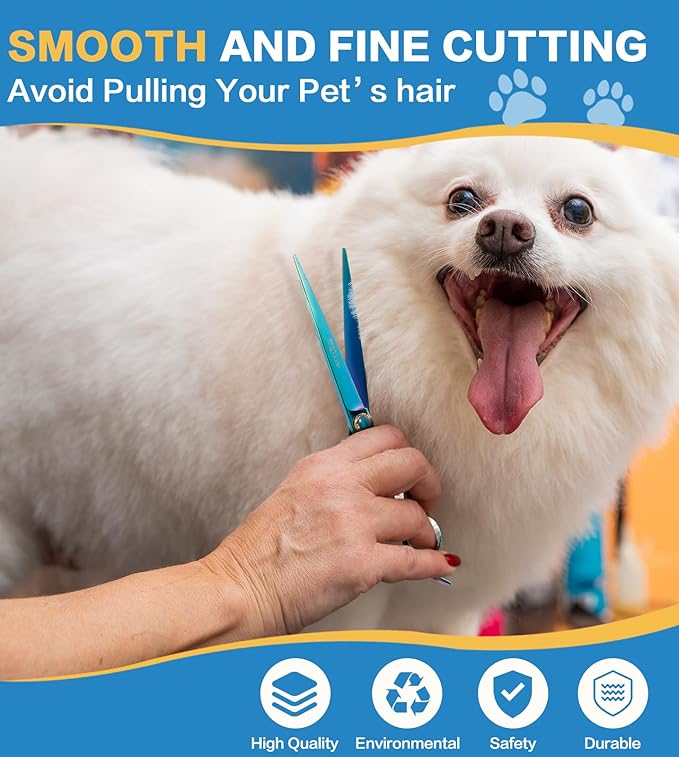 • Features: This pet scissors with ergonomic handles, suitable for most people. Finely polished, frosted surface, fine metal texture. precise adjustable screws effectively prevents screws from loosening due to prolonged use