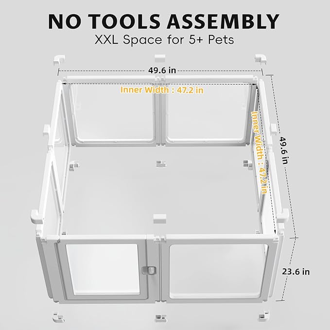 PALOPALO XXL Transparent Acrylic Pet Playpen for Puppies Nursing Dogs & Indoor Outdoor Cats - Lightweight Portable Kennel with Tool-Free Assembly, Breathable Design for Home Use