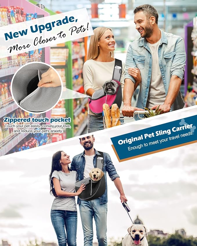 • Zipper-style Touch Pocket: With a zipper-style touch pocket, the dog sling carrier can be convenient to touch and adjust the pet's posture in the sling bag carrier, giving the pet a comfortable feeling. With widened built-in sponge strap, a puppy carrier can reduce the shoulder burden and make dog papoose easy to carry a pet. Adjustable design is suitable for most people.