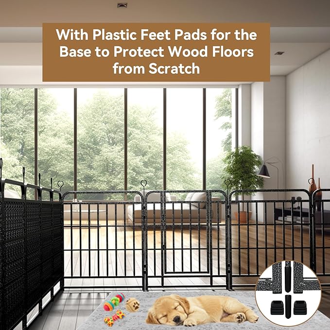 • 【Safe Enclosed & Expandable Area】The heavy-duty dog pen is sturdy and durable, pet fence provides a safe enclosed area for your pups play, run around and get the exercise they need, each panel is separate, which can be combined repeatedly for larger square footage, this temp fencing makes potty and house training much easier