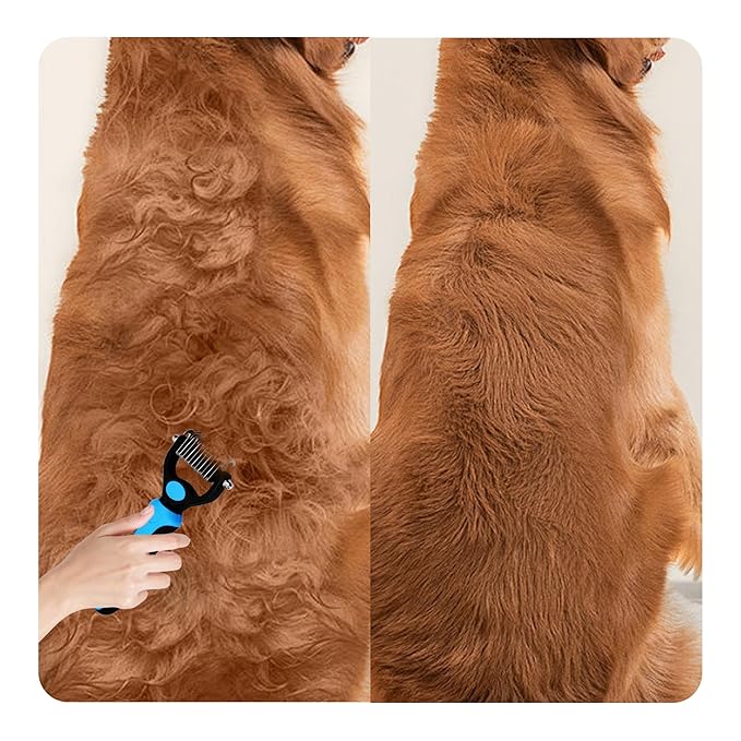 Stainless Steel Pet Dematting Comb Double-sided Shedding Comb for Dogs and Cats, Pack of Black and Blue, Sold Individually