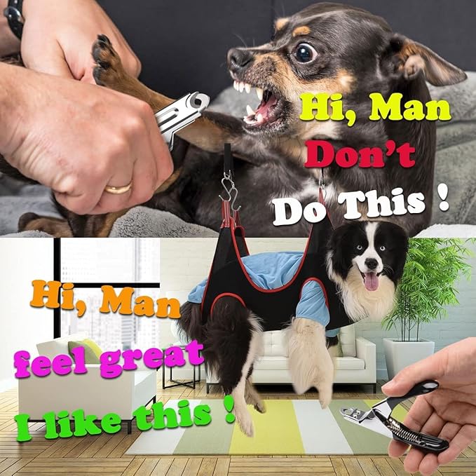 • 【Higher Safety】 The upgraded version of pet grooming hammock, we provide stronger reinforced grommets and colorful carabiner.It can ensure the safety of pets when trimming and grooming pet nails