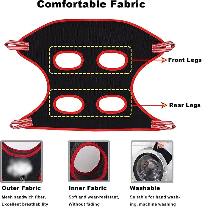 • 【Size Tip】Size L is suitable for pets with about 10.2 inches between the front and rear legs,In order to make your pet fit perfectly with the grooming hammock, please measure the distance between your pet's legs before purchasing, and the maximum load weight is 55 lbs
