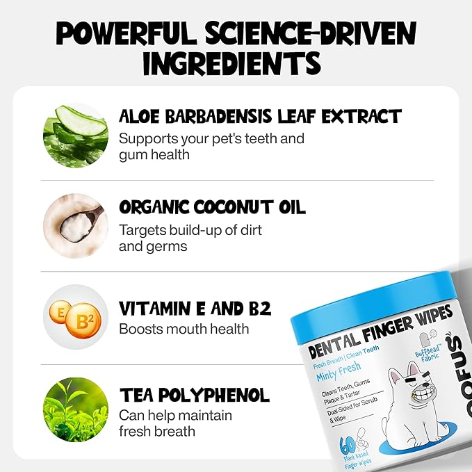 • 𝐒𝐚𝐟𝐞 𝐟𝐨𝐫 𝐃𝐚𝐢𝐥𝐲 𝐔𝐬𝐞: Made with pet-friendly ingredients, these dog teeth cleaning wipes are safe for daily use on dogs and cats of all breeds and sizes. Ensure your pet's oral hygiene stays on point with this simple and effective solution.