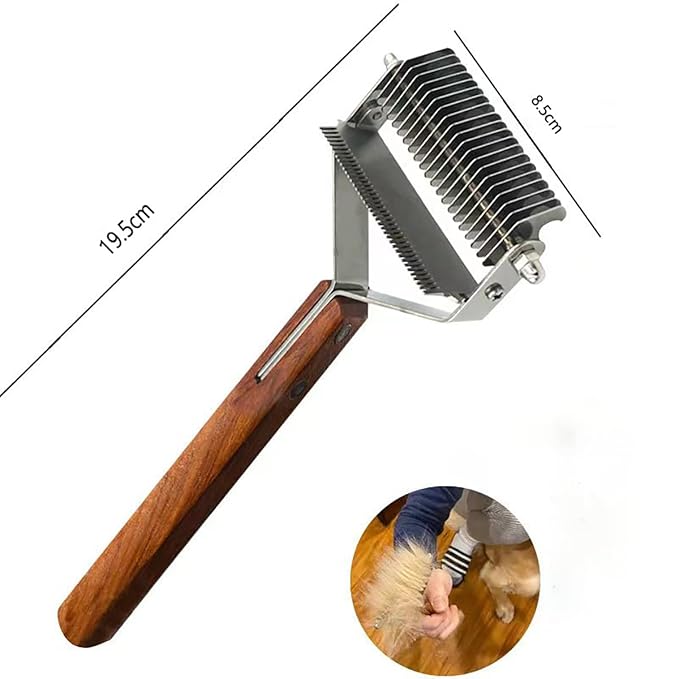 Pet Dematting Comb – 20-Tooth Stainless Steel Grooming Rake for Dogs & Cats, Effective for Medium to Long-Haired Breeds, Tangle & Shedding Control, Anti-Slip Wooden Handle