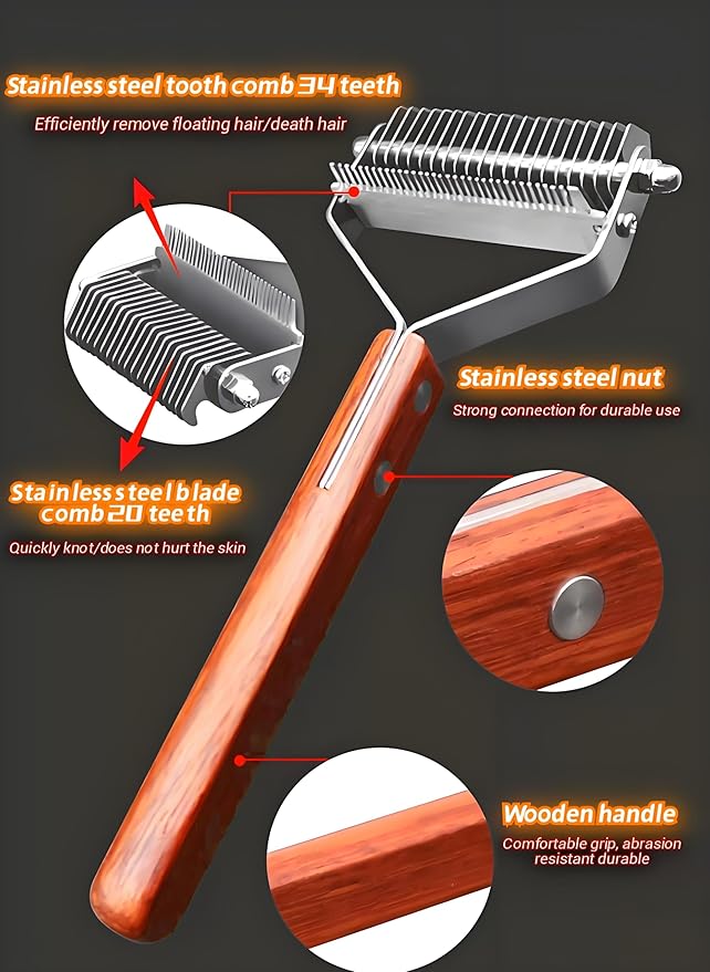 • Comfortable & Anti-Slip Wooden Handle:Ergonomically designed wooden handle provides a comfortable, non-slip grip, ensuring effortless grooming even during extended use.