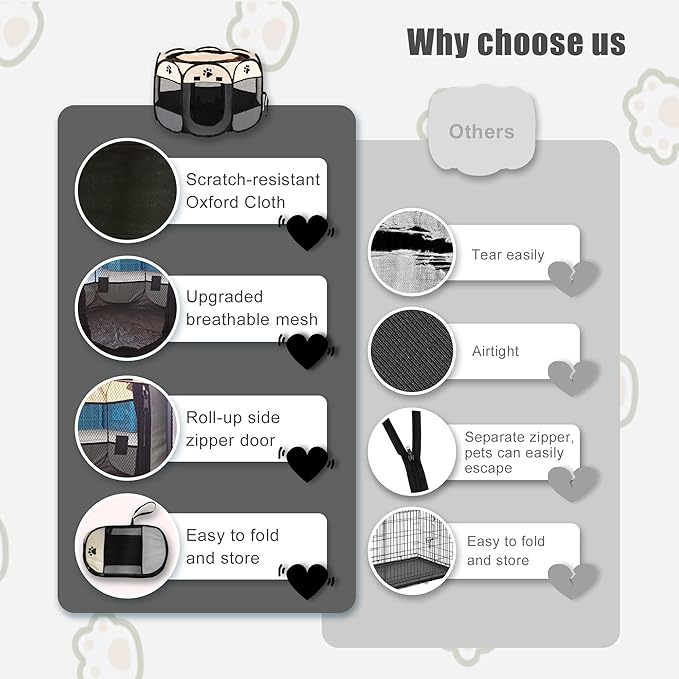 • EASY TO CLEAN UP: Pets can have some cleanup problems in their daily life, you can put diapers or blankets etc. on the bottom of the cat playpen, just change the pads to keep the pet playpen indoor neat and tidy.