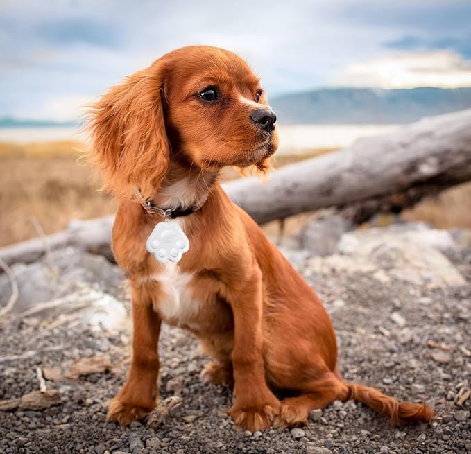 • DESIGN: Paw print-shaped dog collar tracker with multi-colored options for easy visibility and style
