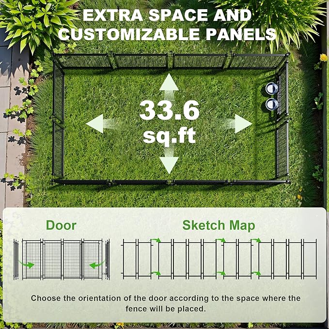• Sturdy and Durable: Our dog kennel outdoor is constructed with high tensile-strength wire gauge, metal frame and ground anchors, ensuring it withstands the elements and provides a safe haven for your furry friend.