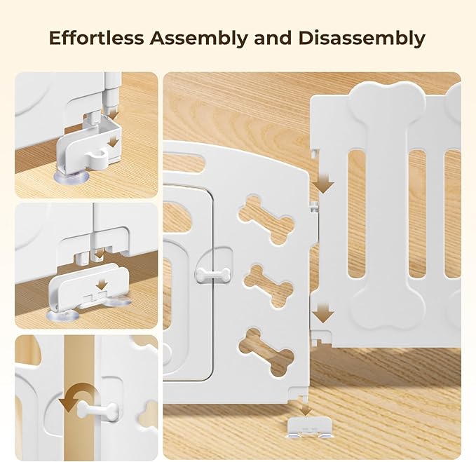 Dog Playpen with Door & Whelping Box, 8-Panel Lightweight Plastic Fence for Small to Medium Pets, Indoor/Outdoor Use, Portable, Durable (White 8-Panels, Regular, 8 Panels with Door)