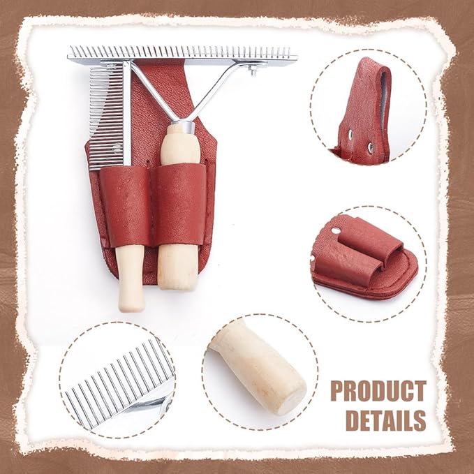 • Product Material--The rake pet comb is made of iron material, the single side pet comb is made of stainless steel material, the storage is made of leather material, the pet comb is equipped with a wooden handle, which is comfortable in hand