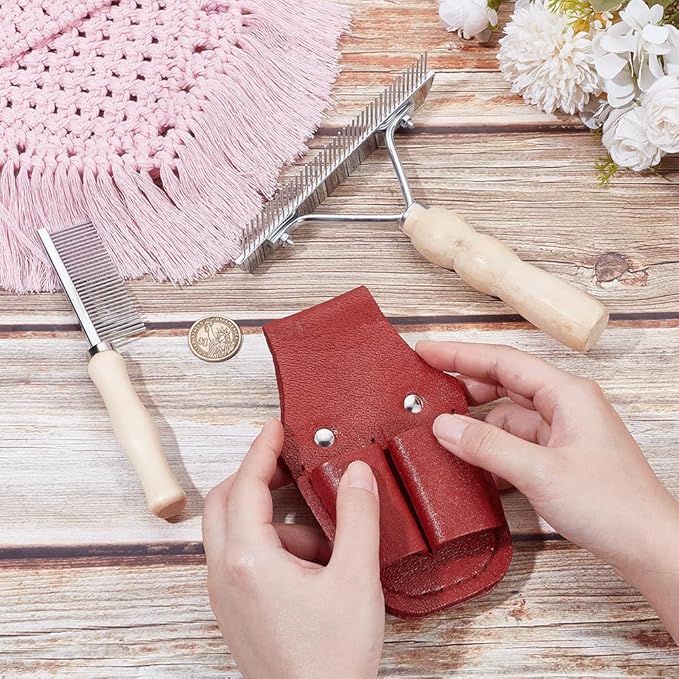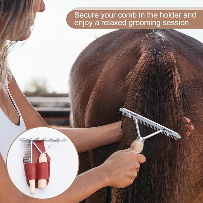 OLYCRAFT 2 Pcs Wooden Handle Grooming Comb with 1 Pc Leather Show Comb Holder Metal Tassel Combs Single-Sided Pet Comb Pet Grooming Comb for Removing Tangles and Knots Grooming Tool