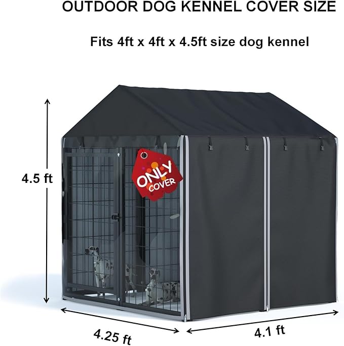 • Cover Only, No Cage, Dog Crate Cover Size: 4x4x4.5 Feet Fits most brands of 4ft outdoor heavy duty dog crates.