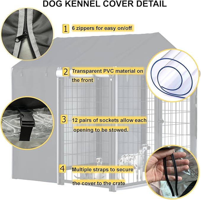 • SIMPLE AND SAFE FIXING: multiple fixing straps are sewn inside the outdoor dog house cover, when you use it, you can tie the straps to the cage, it won't be blown off by the wind, and you can easily remove the cover from the cage by untying the fixing straps