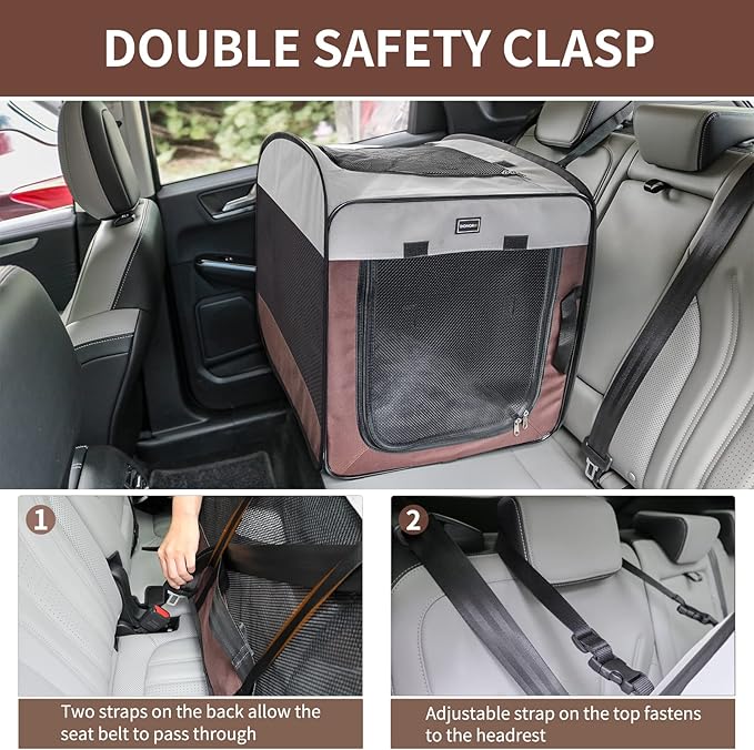 • 【TWO DOORS DESIGN】The dog cage features two doors design for convenient access. Double Zipper avoids pet’s escaping. Removable pad is comfortable and washable.