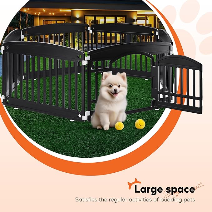• Adjustability and Portability: Featuring a flexible design, plastic dog playpen is easy to be arranged in various shapes and sizes to suit your needs. It's foldable for convenient storage and portability, making it ideal for travel