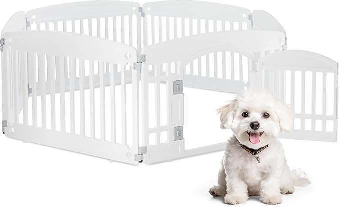 HealSmart 6 Panel 24" Plastic Dog Playpen, Folding & Portable Pet Playpen for Indoor & Outdoor Use, Safe & Secure Fence, Ideal for Small to Medium Dogs, White