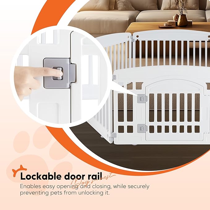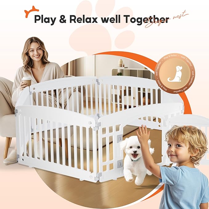 • Adjustability and Portability: Featuring a flexible design, plastic dog playpen is easy to be arranged in various shapes and sizes to suit your needs. It's foldable for convenient storage and portability, making it ideal for travel