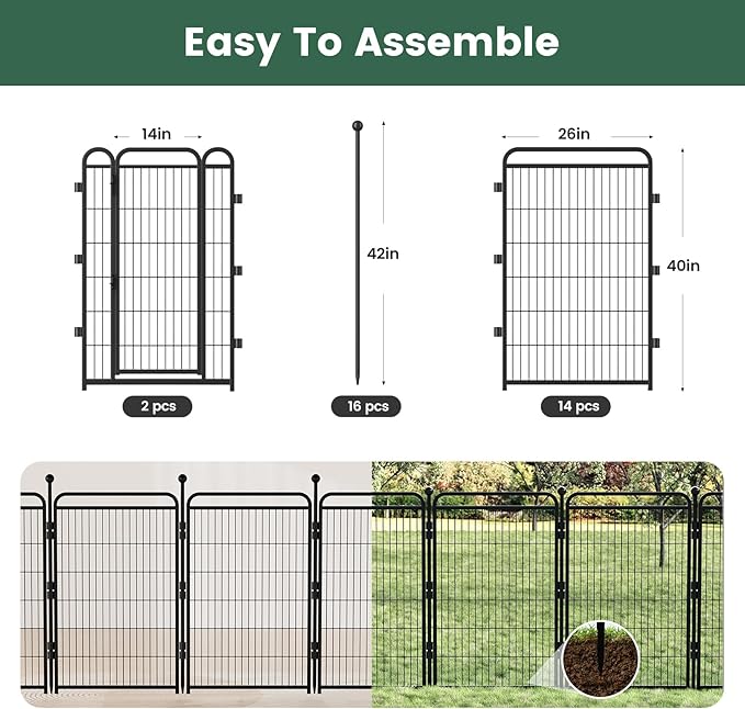 Gardner Pet Dog Playpens, 40" H 16 Panels Dog Pen Outdoor/Indoor Dog Fence Exercise Pen for Small/Medium/Large Dogs, Foldable Pet Play Yard Gate with Gravity Automatic Lock, Pet Playpen, Black
