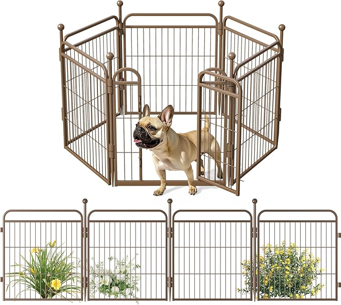 Gardner Pet Dog Playpens, 24" H 6 Panels Dog Pen Outdoor/Indoor Dog Fence Exercise Pen for Small/Medium Dogs, Foldable Pet Play Yard Gate with Gravity Automatic Lock, Pet Playpen, Brown