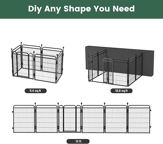 - Easy Assemble & DIY Shapes: The panels could be assembled in just a few minutes without toolsdue to the rod-connected design. You could DIY the dog pen to any shape you need like square, rectangle, round, etc. Our pet play pen could be disassembled into a flat and compact size for space saving and easy carrying, perfect for travel, RV camping or play in the yard.