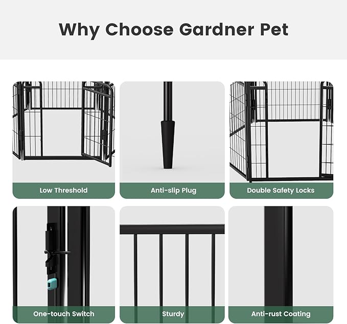 - A Win-Win Solution: The Gardner Pet Dog Playpen is different from a traditional enclosure cage or kennel, our dog pen provides a spacious semi-open activity area specifically for your lovely dog. Your dog can run and play happily and freely in this dog exercise play.Meanwhile, you could unlock your freedom without worry about your pets.
