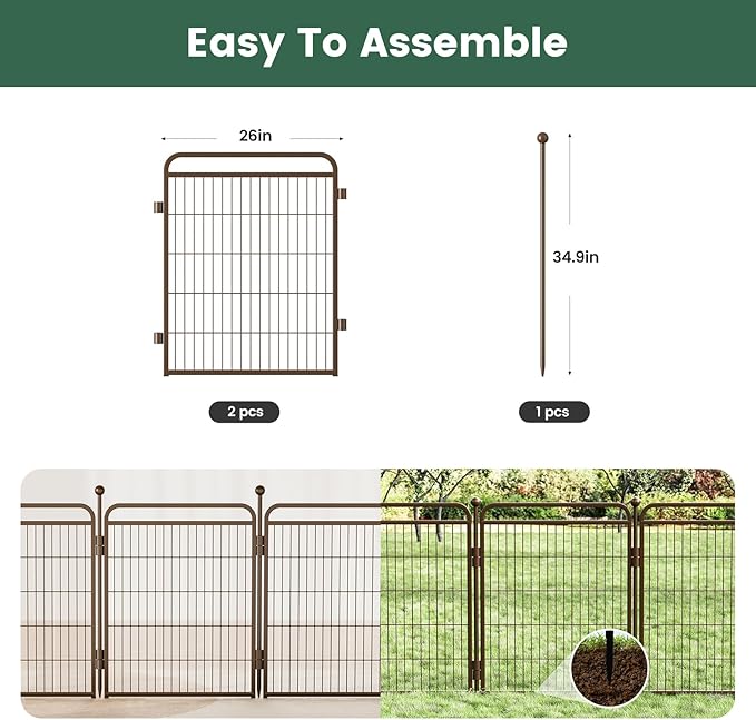 • A Win-Win Solution: The Gardner Pet Dog Playpen is different from a traditional enclosure cage or kennel, our dog pen provides a spacious semi-open activity area specifically for your lovely dog. Your dog can run and play happily and freely in this dog exercise play.Meanwhile, you could unlock your freedom without worry about your pets.