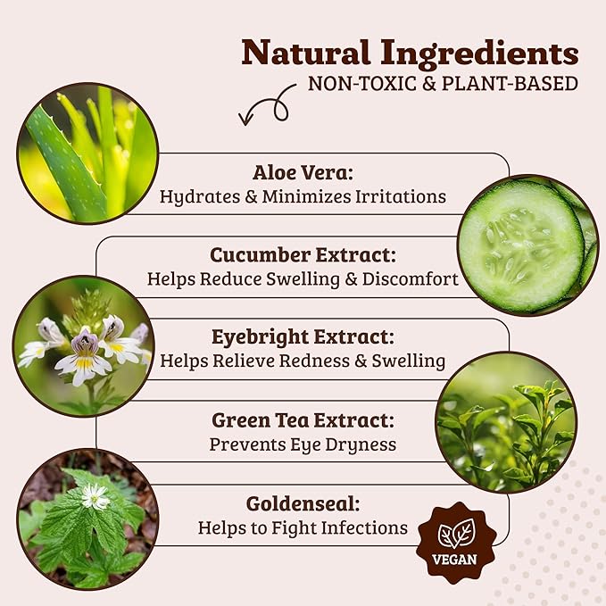 • THE POWER OF NATURAL INGREDIENTS - Dive into the goodness of Witch Hazel, Aloe Vera, and Eyebright, natural warriors against eye irritation, tear stains, and crusty build-up. These herbal ingredients ensure gentle yet effective cleansing, making these pet eye wipes for dogs a safe choice for your furry friend's sensitive eyes.