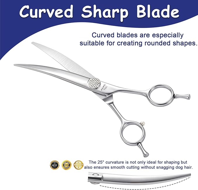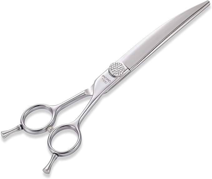 Professional Curved Dog Grooming Scissors with Simulation Diamond 440C Stainless Steel Polished Pet Cat Hair Cutting Shears for Groomers and Home users 7''