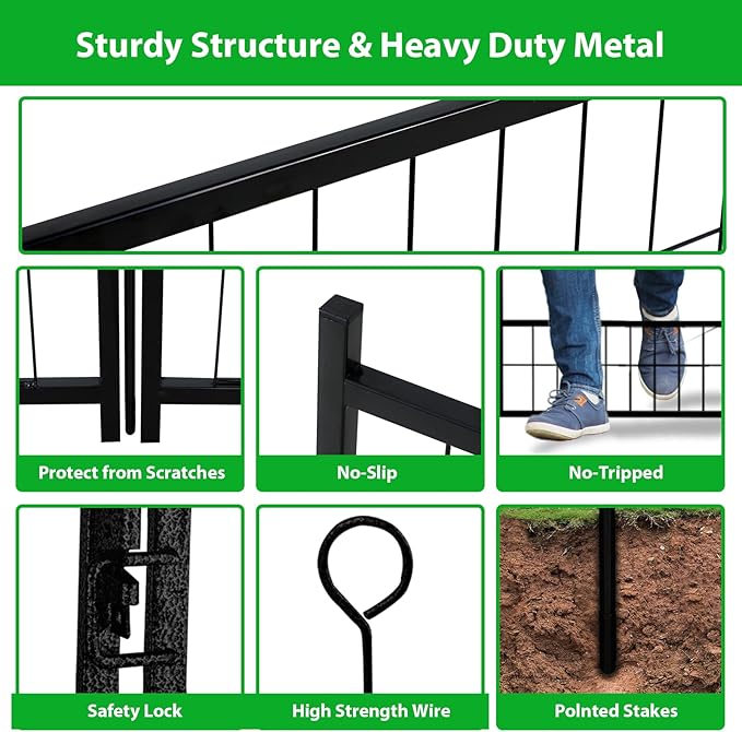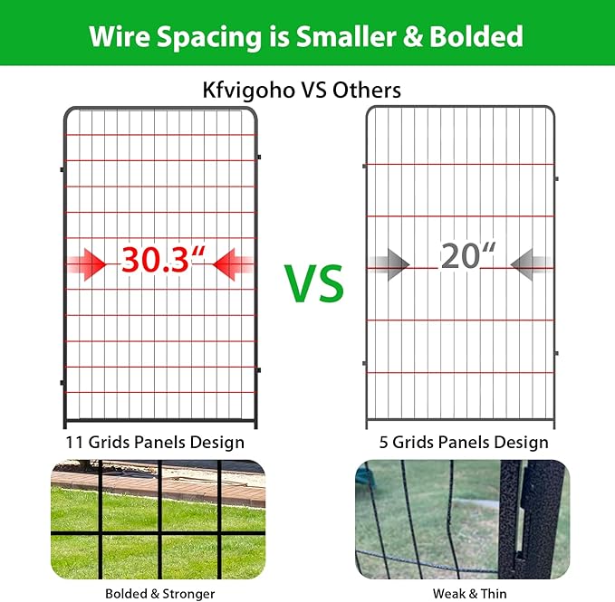 • 【Sturdy Structure & Stable Stakes】Kfvigoho metal stakes are designed round top, which can be pounded into the ground for greater stability, this dog fence with sturdy structure, so dogs can't knock it down and keep them confined in a safe area, the pet pen works great for small, medium and large dogs and rabbits, ducks, turtles etc