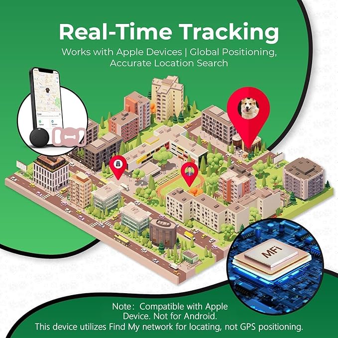 • SUBSCRIPTION-OPTIMIZED SERVICE: This advanced dog tracker is designed exclusively for iOS, connecting seamlessly with the 'Find My' app to track your pet's location. For enhanced features, ensure your iOS is up-to-date. Note: Android is not supported