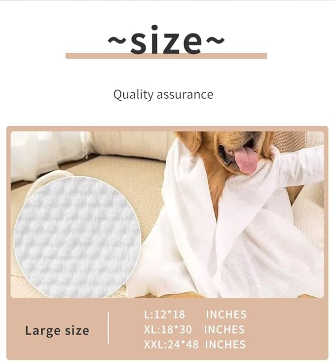 • OVERSIZED DESIGN: Extra-large bath towels available in three generous sizes - 12x18 inches, 18x30 inches, and 24x48 inches for thorough pet cleaning and grooming