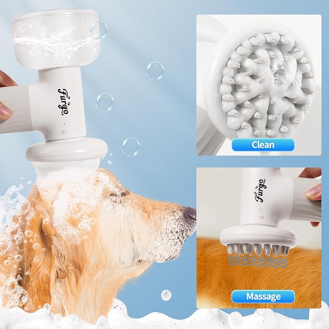 Furgo Dog Bath Brush with Automatic Shampoo & Foam Dispenser, Soft Silicone Massage Brush for Deep Cleansing, Nourishing & Grooming, Rechargeable Cat Foam Sprayer for All Hair Types Pets