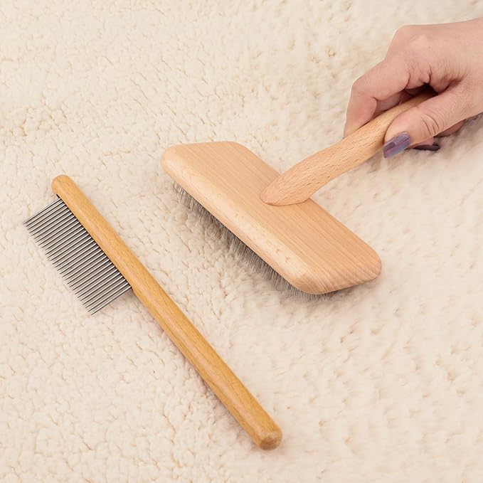Sheepskin Wool Brush - Carpet Rake Tool for Pet Hair Removal and Household Fabric Care