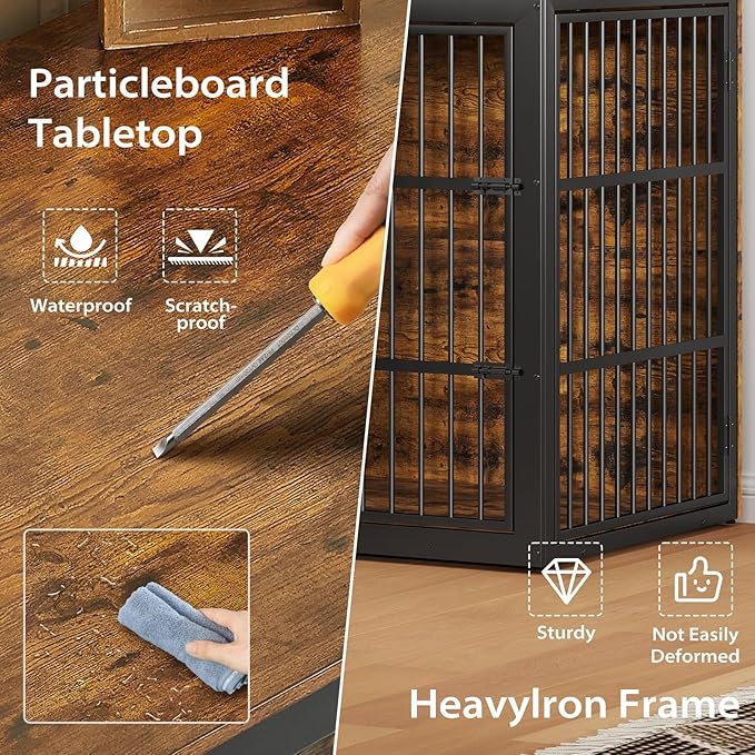 • [ Dog Crate Furniture ] This xl dog crate brings convenience and practicality together in one thoughtful design. Designed with a particleboard top, it provides extra storage space for snacks, toys, bedding, and other pet essentials, helping you keep everything organized and easily accessible.