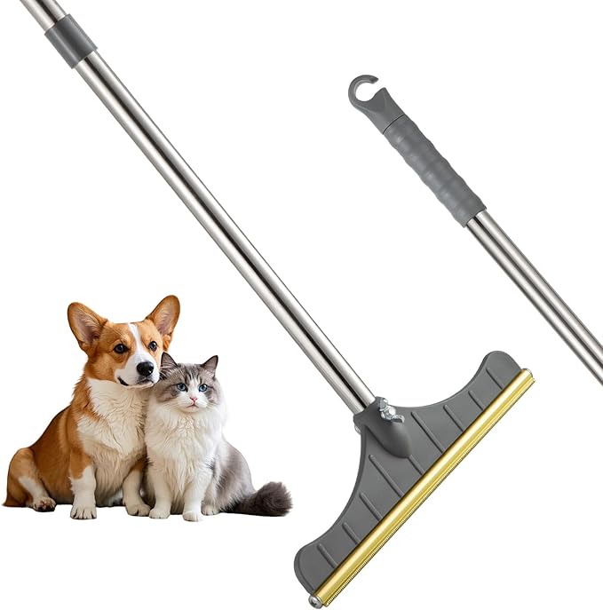 • Smart, Ergonomic Pet Hair Tool- Save time and money on lint rollers! The non-slip grip and balanced 47-inch handle let you clean floors or furniture while standing. Stainless steel construction ensures longevity, while the sleek design stores neatly in closets. Love your home, hate the mess!