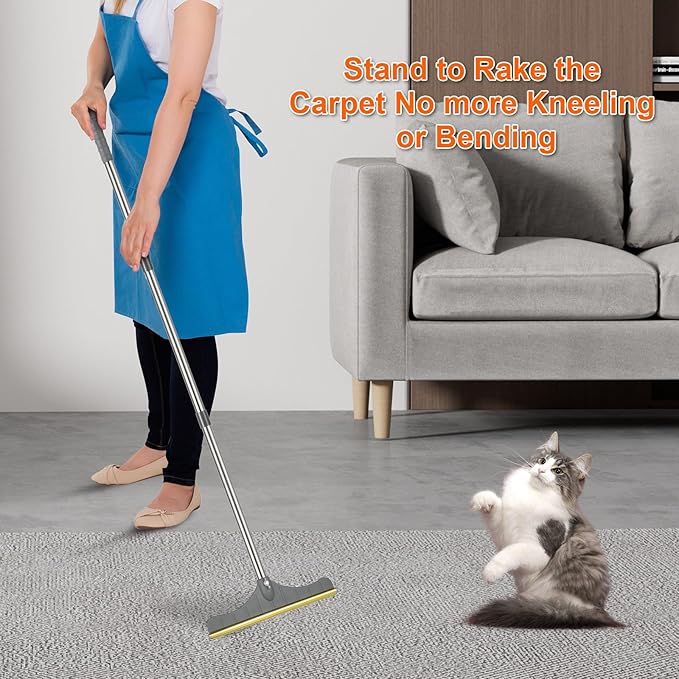 • Versatile 3-Section Adjustable Design- Perfect for tall users or hard-to-reach spots! Extend the stainless steel handle from compact storage size to 47 inches for effortless hair removal on couches, cushions, and thick rugs. The alloy comb head glides smoothly to lift embedded fur without damaging fabrics.Adjust the handle length (3 settings) to tackle stairs, pet beds, or sofa crevices.