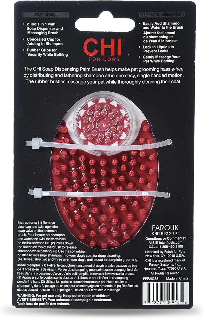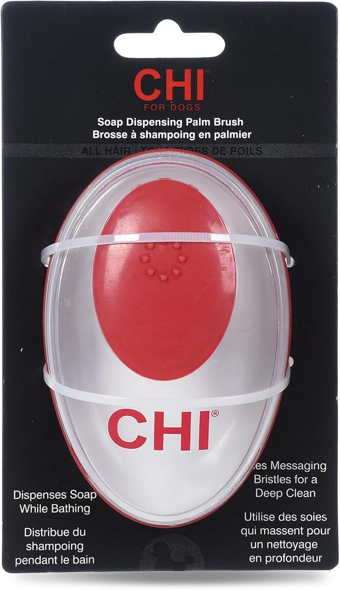 CHI for Dogs Soap Dispensing Palm Brush for Dogs | Dog Grooming Brush with Soap Dispenser | Hand Tool for Dog Grooming