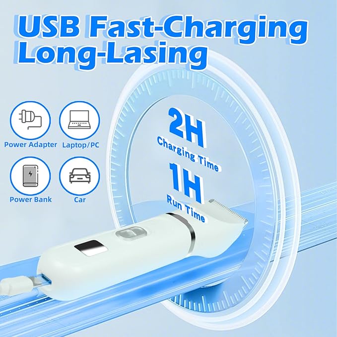 • 【Fast Charging】Pet trimmer equipped with a build - in 600mAh fast - charging lithium - ion battery, after just 2 hours of full charging, it provides up to 60 minutes of long - lasting clipping time. The LED display on the dog clippers clearly shows the remaining battery percentage. USB charging cable is provided, not the power adapter.