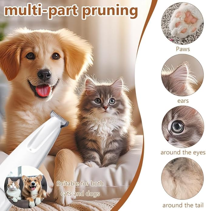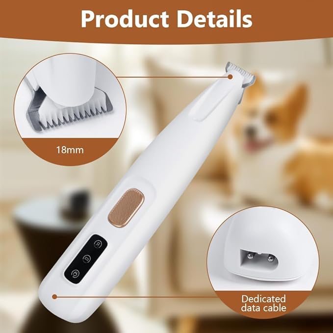 • 18mm Blade & Safety Design: specially designed for small-area trimming, this pet hair trimmer for dogs paws combines a ceramic blade head with stainless steel blades. Its compact rounded tip glides smoothly through tight spaces like paw crevices, ears, eyes, and around the hips, eliminating risks of accidental cuts