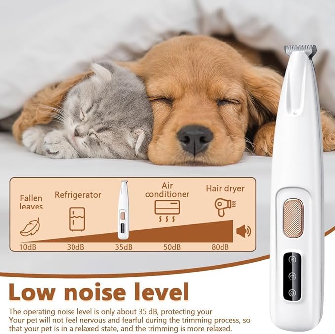 • Low Vibration & Quiet Operation: This paw trimmer features silent technology operating below 35 decibels, protecting your pet from stress and panic. It maintains a calm and comfortable grooming experience while creating a tranquil, stress-free trimming environment