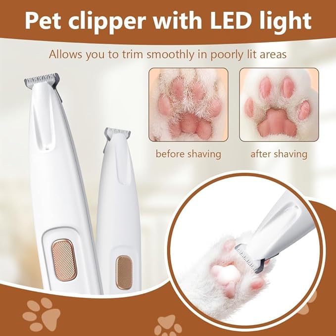 Upgraded Dog Paw Trimmer, Paw Trimmer for Dogs, Rechargeable Pet Shaver with LED Light, Low Noise Pet Hair Clippers for Paws Eyes Ears Face Rump (Brown)