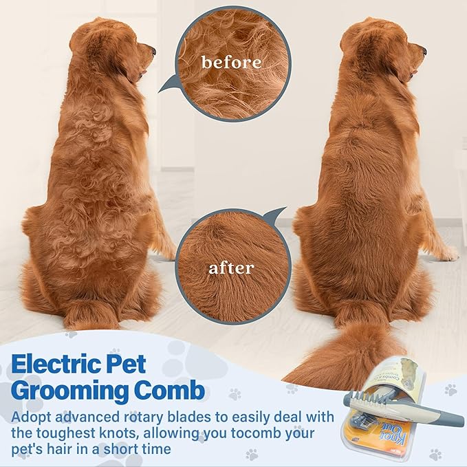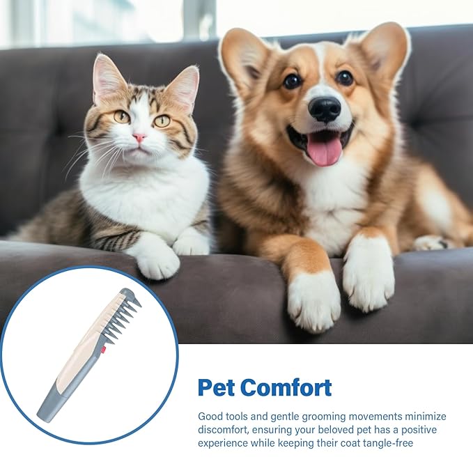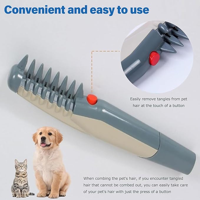 • Swift Grooming: The Lifweb Mataway E - Comb Pet Grooming Comb features hidden rotating blades that can smoothly cut through tangled fur. With just a button press, it instantly eliminates knots, ensuring fast, smooth, and safe grooming, saving you and your pet from unnecessary stress