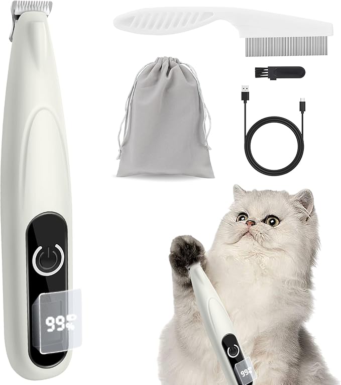 - 20mm Extra Wide Blade & Safe: This cat hair clippers is designed with ceramic blades plus stainless steel blades, which is sharper and saves time effectively. Designed for cleaning small area of pet's hair. The blades have a circular toothed moving blade, which speeds up heat dissipation while increasing the shaving area. The blades will not burn or scratch your pet, improving the efficiency of small area trimming, perfect for small areas such as paws, ears, eyes, hips and more