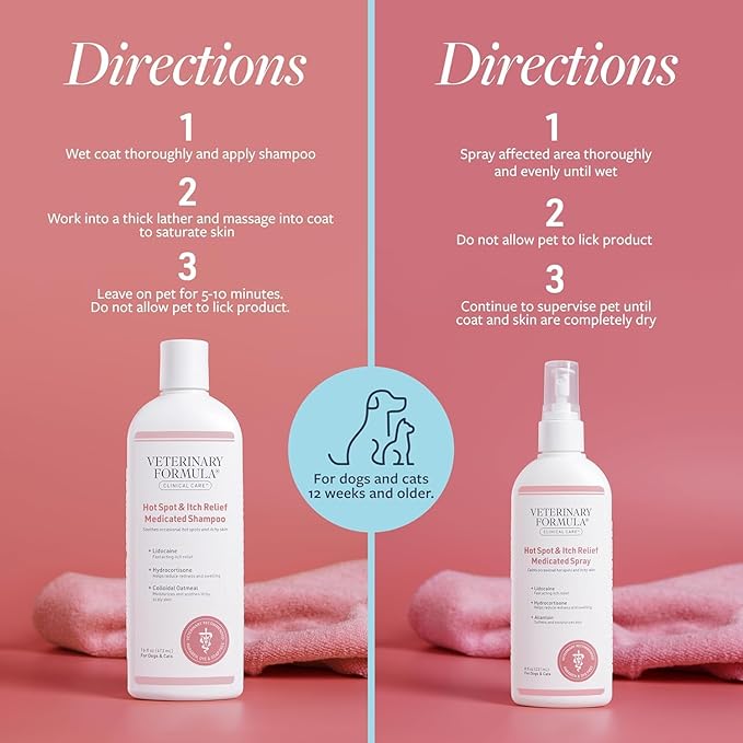 • FOR DOGS & CATS – Safe for pets over 12 weeks old, this anti-itch spray for dogs and moisturizing shampoo provide a non-irritating solution for dog skin allergy relief, leaving coats soft and refreshed.