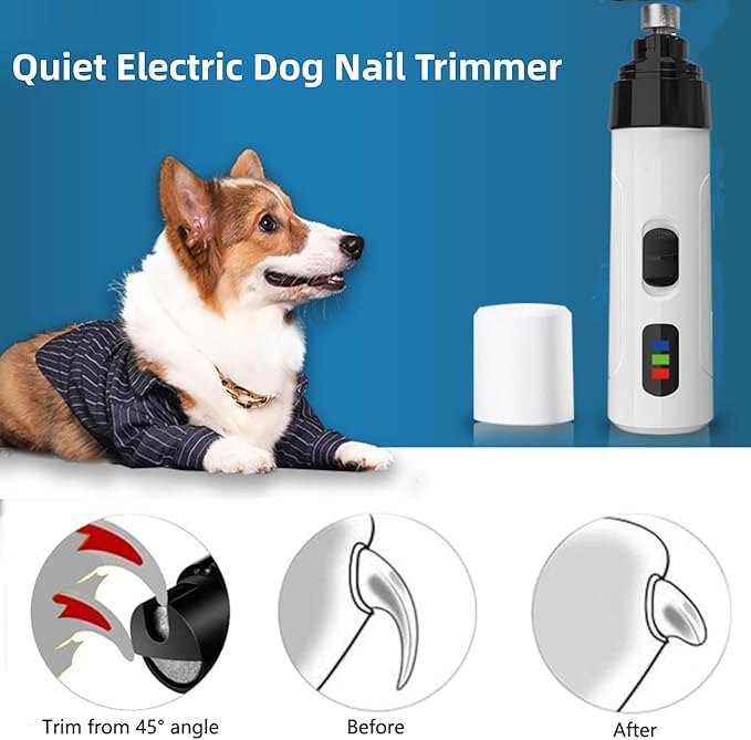 • Quiet Electric Dog Nail Trimmer: Our dog nail grinder with low noise and low-vibration that uses quietly at less than 40 dB, reducing the noise that can cause anxiety and stress in dogs during nail trimming, suitble for your pet