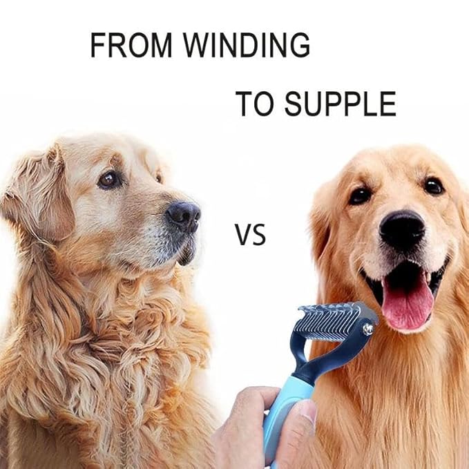 Pet Grooming Rake - Double-Sided Deshedding Dematting Tool, Undercoat Rake for Dogs & Cats, Extra-Wide Dog Grooming Brush & Deshedder Comb for Long Hair, Reduces Shedding 95%